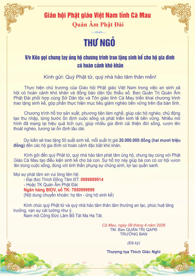 Xem tiếpThực hiện: Ban TT-TT Phật giáo Cà Mau