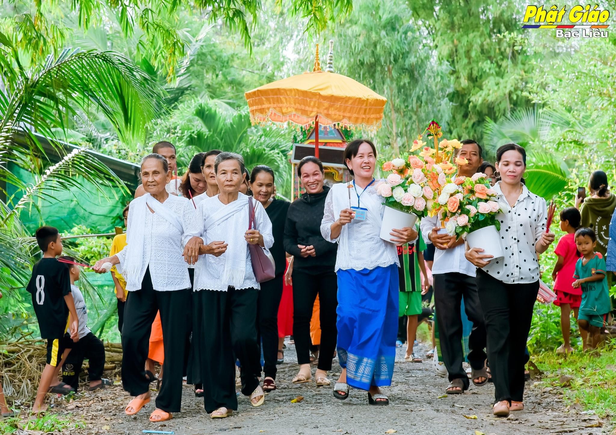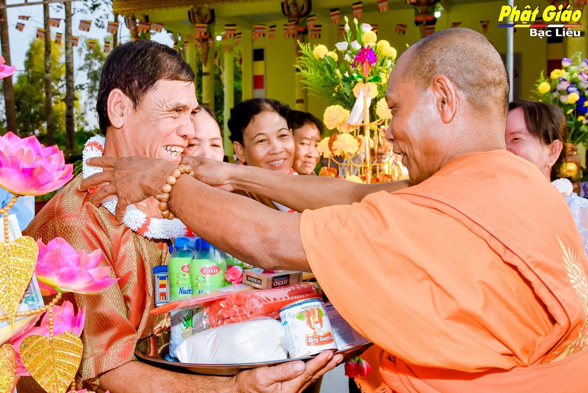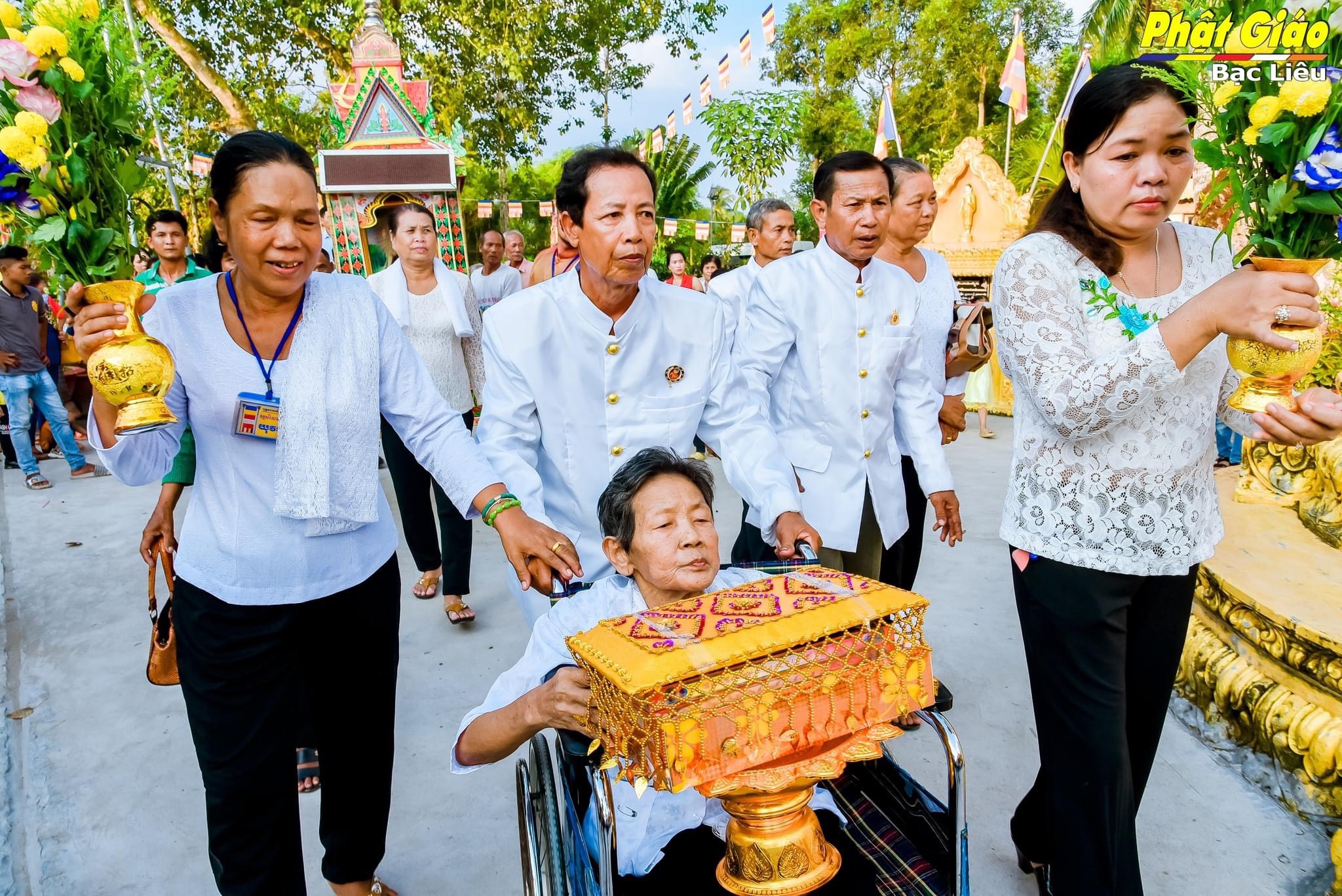 Trong lễ Dâng Y năm nay tại chùa Khna Rộn, gia đình ông Huỳnh Chỉ và bà Sơn Thị Em, ấp Ninh Chùa, xã Ninh Quới A, huyện Hồng Dân phát tâm dâng Y và tứ sự đến chư Tăng. Đoàn dâng Y nhiễu quanh thôn xóm trong tiếng nhạc ngũ âm quen thuộc, phum sóc sáng bừng chào đón niềm vui chư Tôn đức Tăng vừa tròn một tuổi đạo.