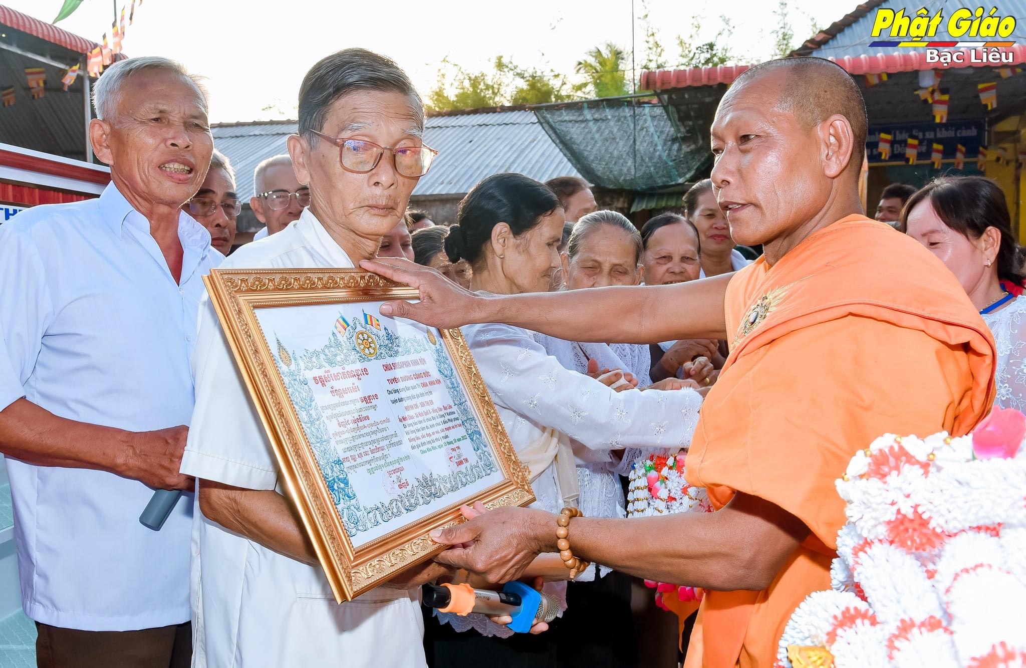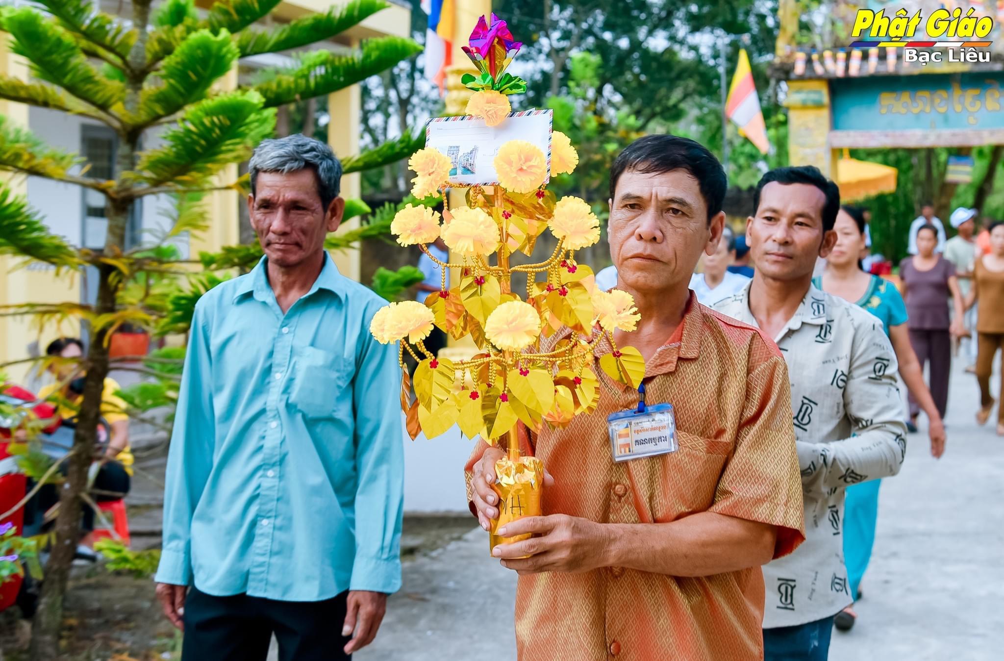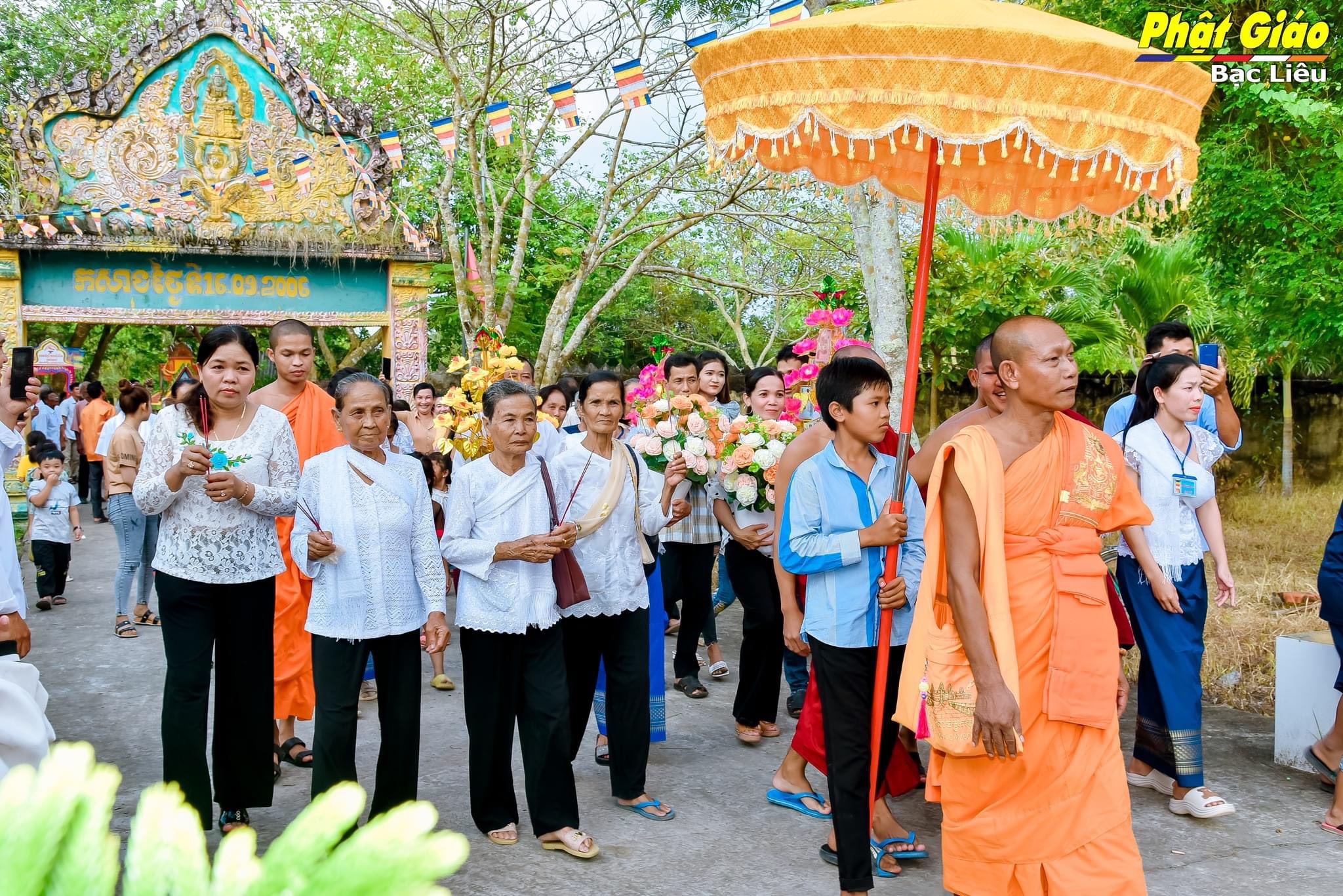 Trong lễ Dâng Y năm nay tại chùa Khna Rộn, gia đình ông Huỳnh Chỉ và bà Sơn Thị Em, ấp Ninh Chùa, xã Ninh Quới A, huyện Hồng Dân phát tâm dâng Y và tứ sự đến chư Tăng. Đoàn dâng Y nhiễu quanh thôn xóm trong tiếng nhạc ngũ âm quen thuộc, phum sóc sáng bừng chào đón niềm vui chư Tôn đức Tăng vừa tròn một tuổi đạo.