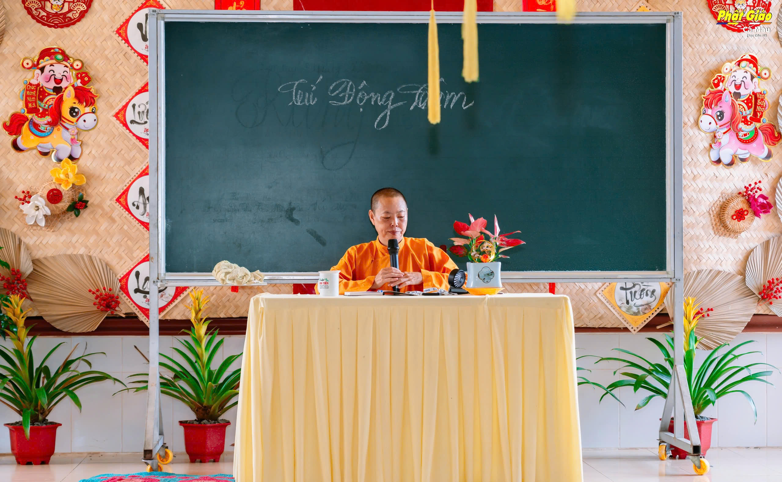 Tại buổi sinh hoạt, Ni sư Thích Nữ Liên Hòa thuyết giảng chuyên đề “Tứ động tâm”, khái quát bốn thánh tích gắn liền với cuộc đời Đức Phật Thích Ca Mâu Ni: nơi đản sinh, thành đạo, chuyển Pháp luân và Niết-bàn. Qua đó, Ni sư giúp các khóa sinh nhận thức rõ những dấu mốc trọng đại trong hành trình giác ngộ của Đức Thế Tôn, khơi dậy niềm kính tin Tam Bảo và ý chí noi theo hạnh nguyện cao đẹp của Ngài.