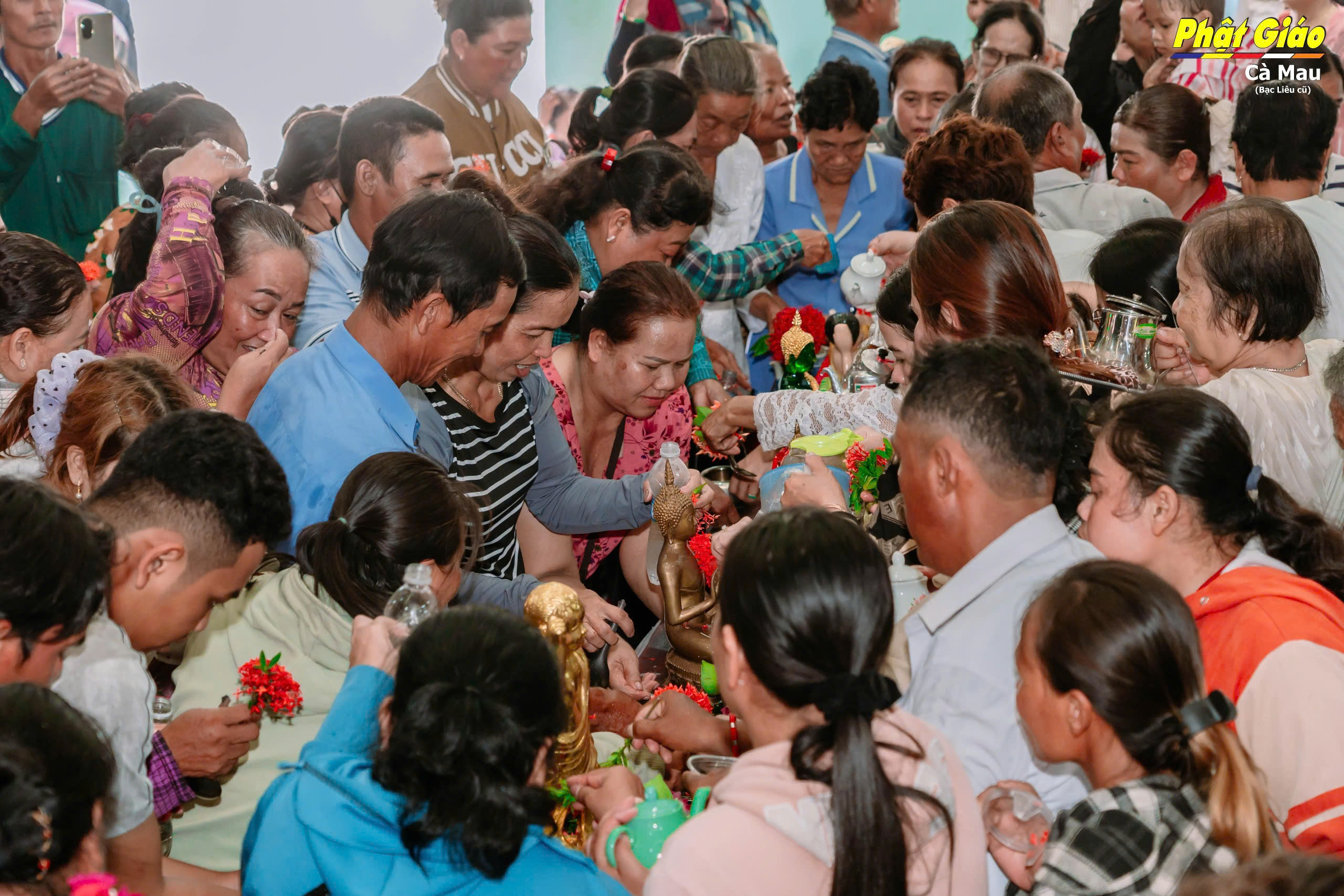 Sáng ngày 16/04/2026, trong không khí hân hoan đón Tết cổ truyền Chol Chnam Thmay, tại chùa Xiêm Cán (phường Vĩnh Trạch), dưới sự chủ trì của Hòa thượng Dương Quân – Trụ trì bổn tự, chư Tăng cùng đông đảo đồng bào Phật tử Khmer đã trang nghiêm cử hành nghi thức Tắm Phật truyền thống.