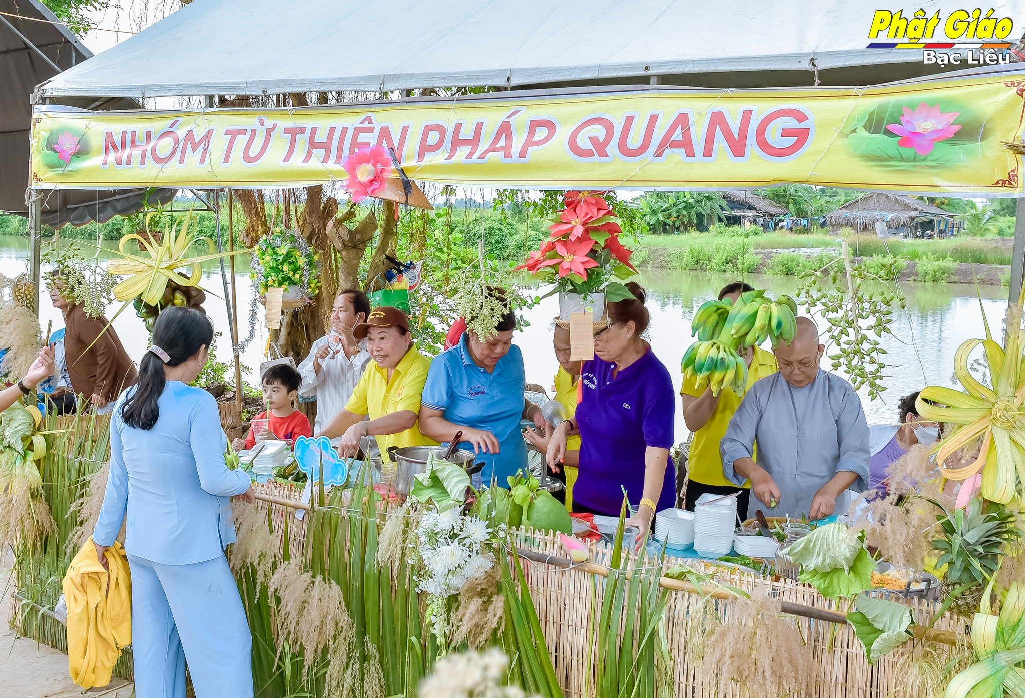 Trong buổi sáng, Đại đức trụ trì phối hợp y bác sĩ bệnh viện Đa khoa Giá Rai tổ chức khám và phát thuốc miễn phí cho người dân nghèo tại địa phương; cùng nhiều hoạt động: Tổ chức quy y Tam Bảo cho hơn 50 thiện nam tín nữ; Trai đàn chẩn tế nguyện cầu âm siêu dương thới; Chương trình thắp nến tri ân; Đặc biệt chương trình gian hàng ẩm thực Buffet chay hơn 30 món với sự tham gia của các tự viện và nhóm Phật tử các đạo tràng.